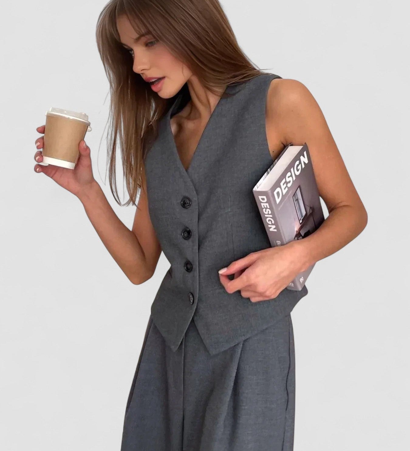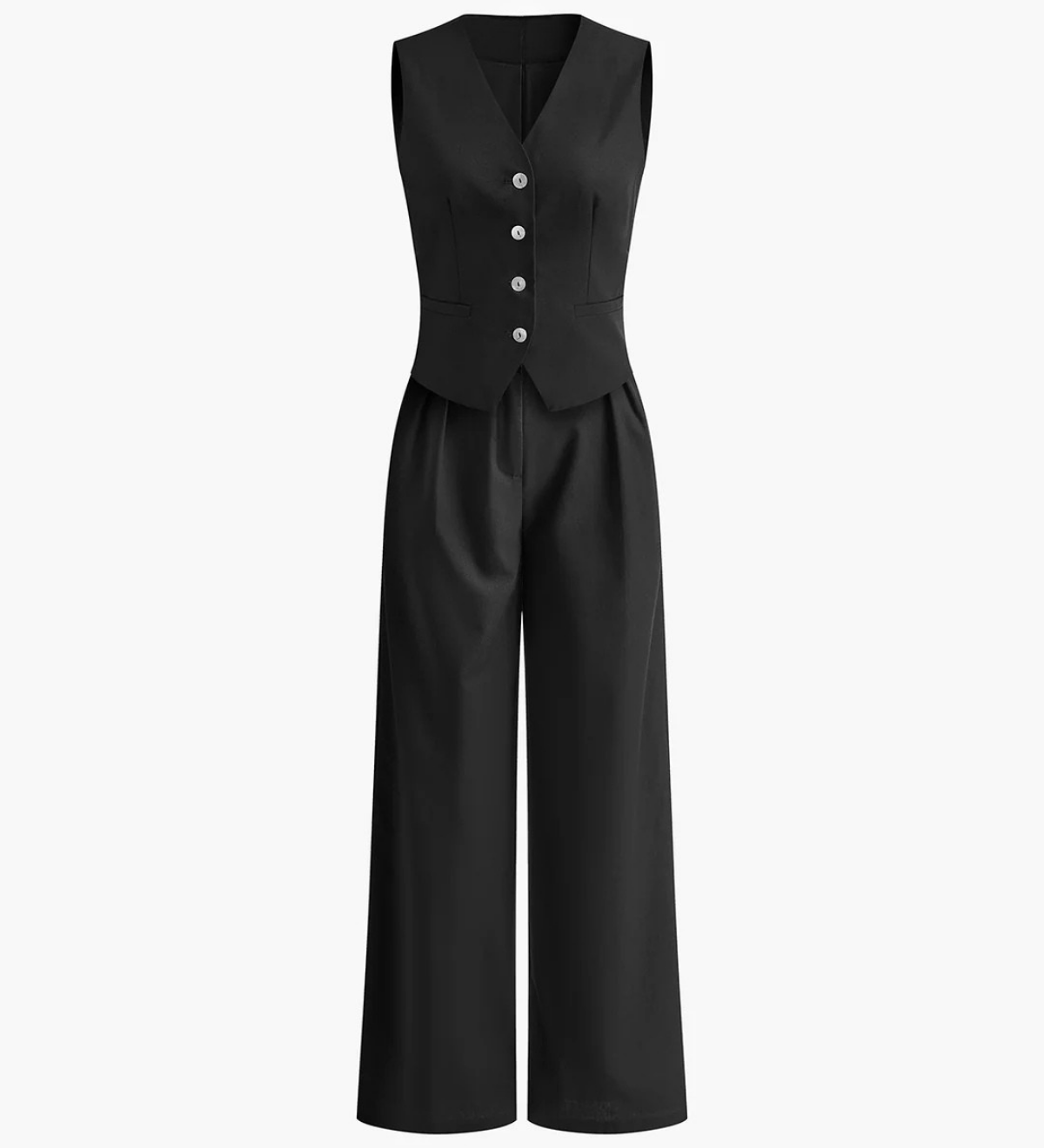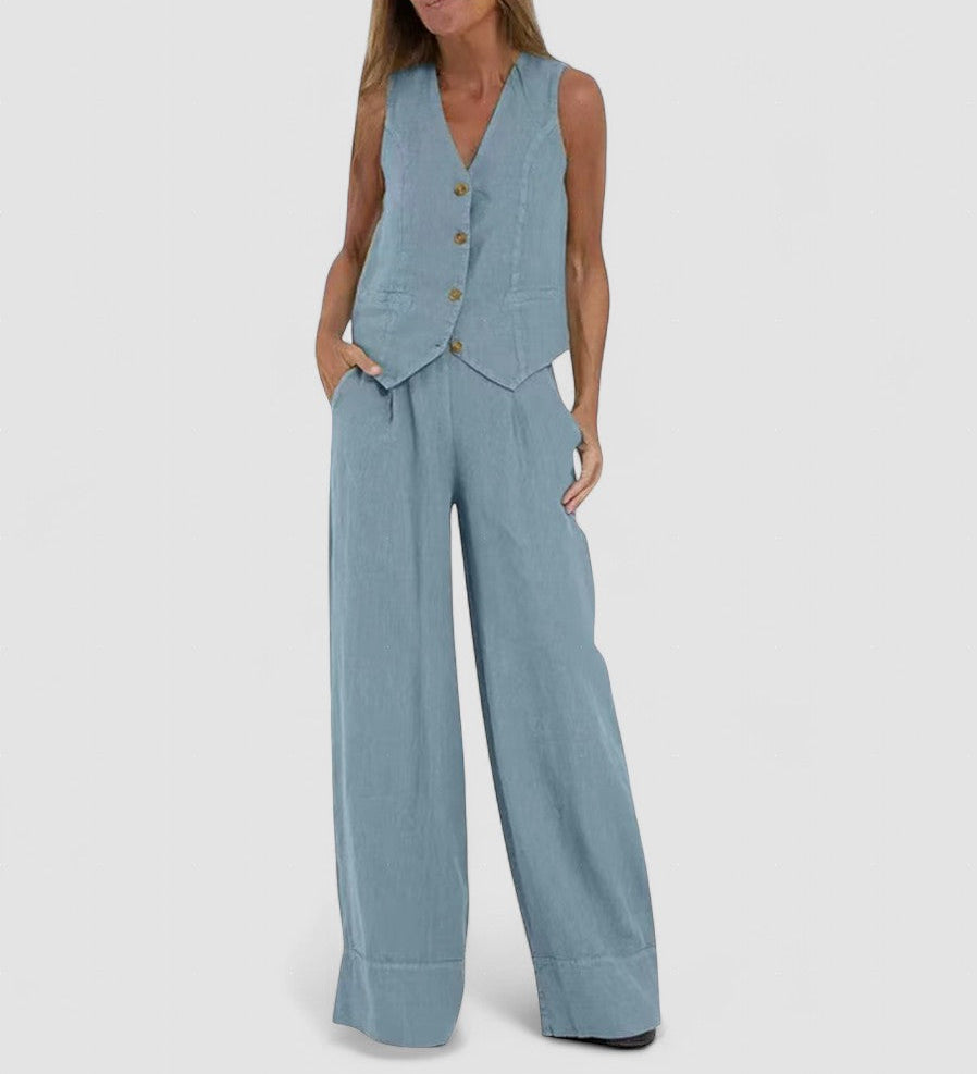 Jessica - Set Vestă cu Nasturi și Pantaloni Largi