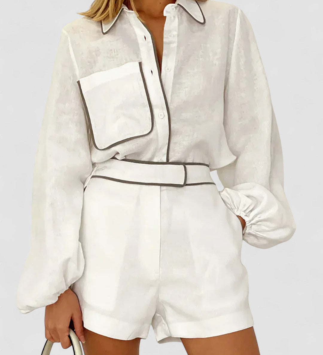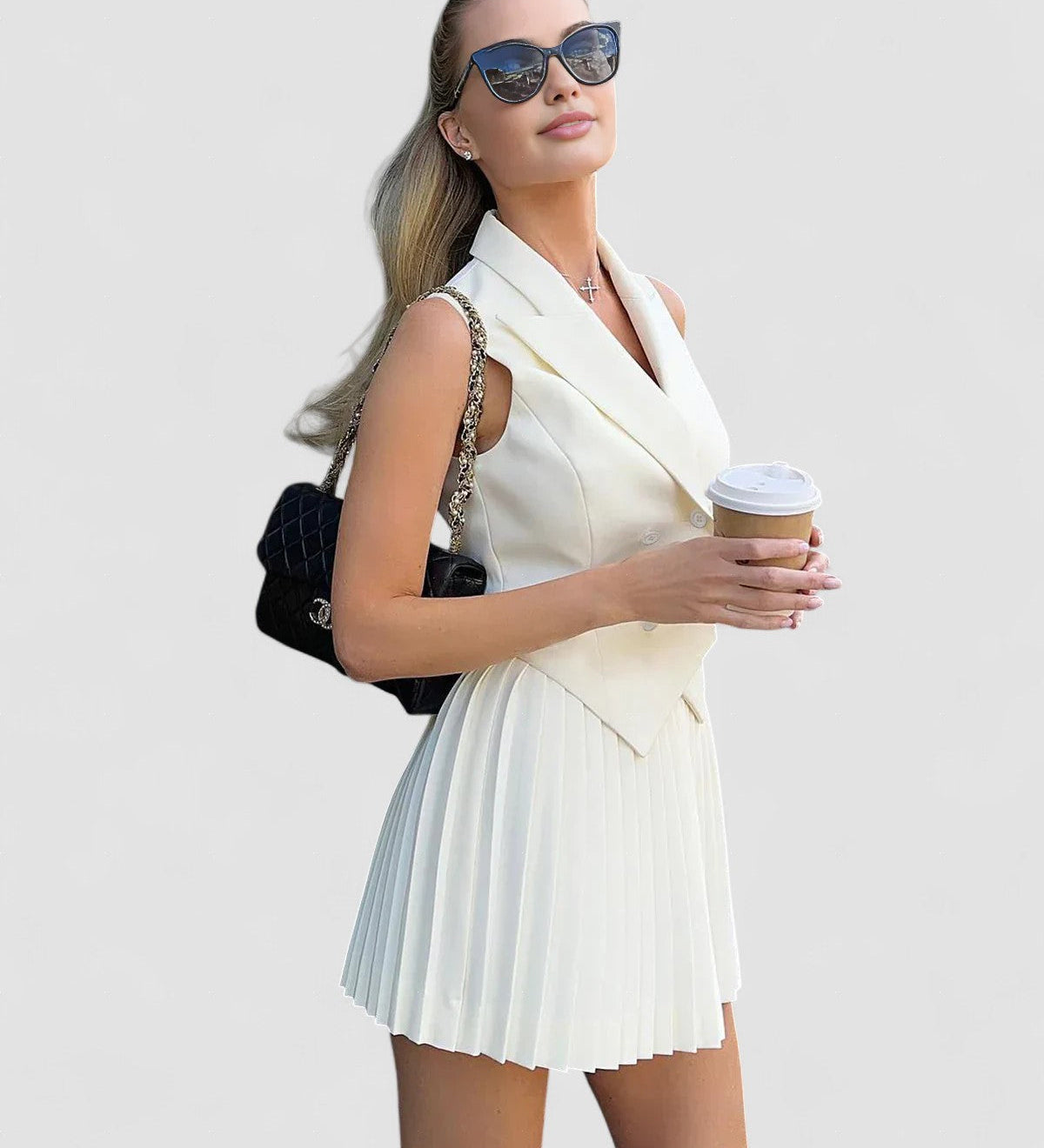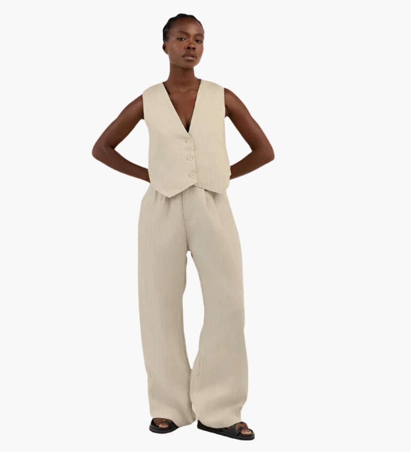 Jessica - Set Vestă cu Nasturi și Pantaloni Largi