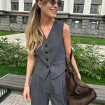 • Pantaloni Asortați: Pantalonii complementari completează ținuta sofisticată și modernă.