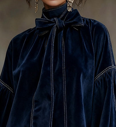 Rochie Mini din Catifea, Croi Lejer cu Guler Tip Papion