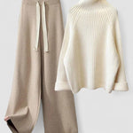 • Silhouette Relaxată: Puloverul lejer și pantalonii largi asigură confort și libertate de mișcare.
