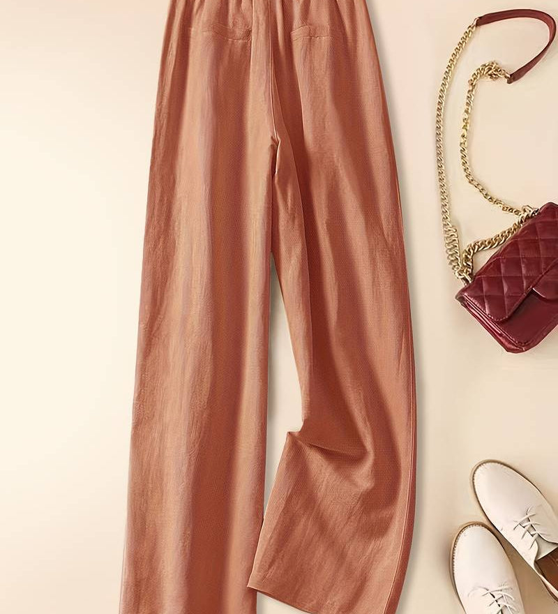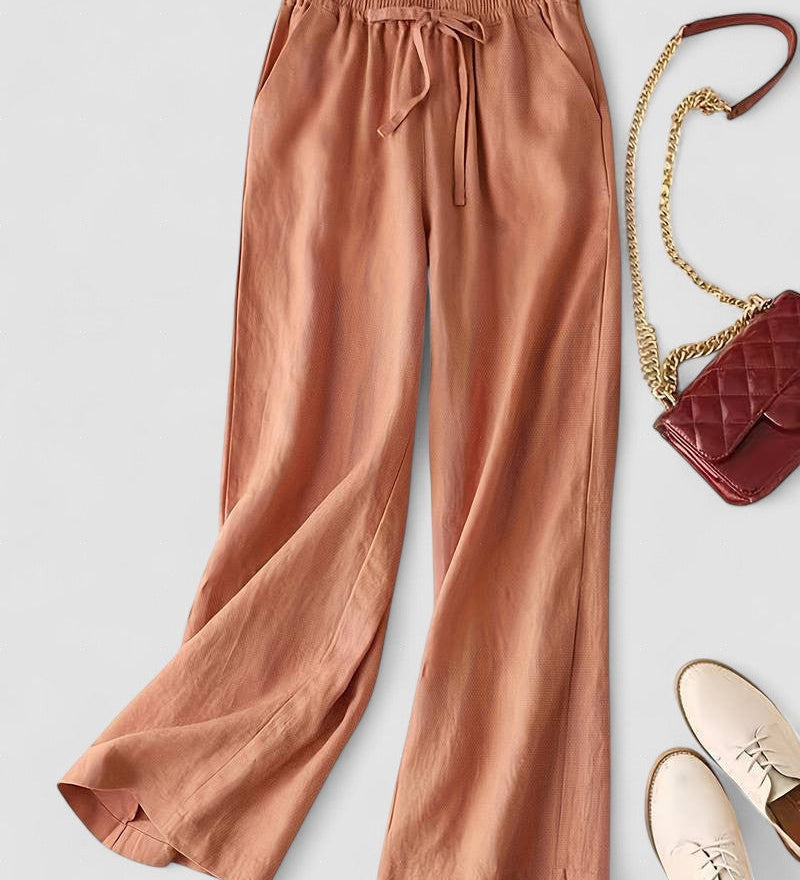 Camille | Pantaloni cu Picior Larg din Amestec de Bumbac și In