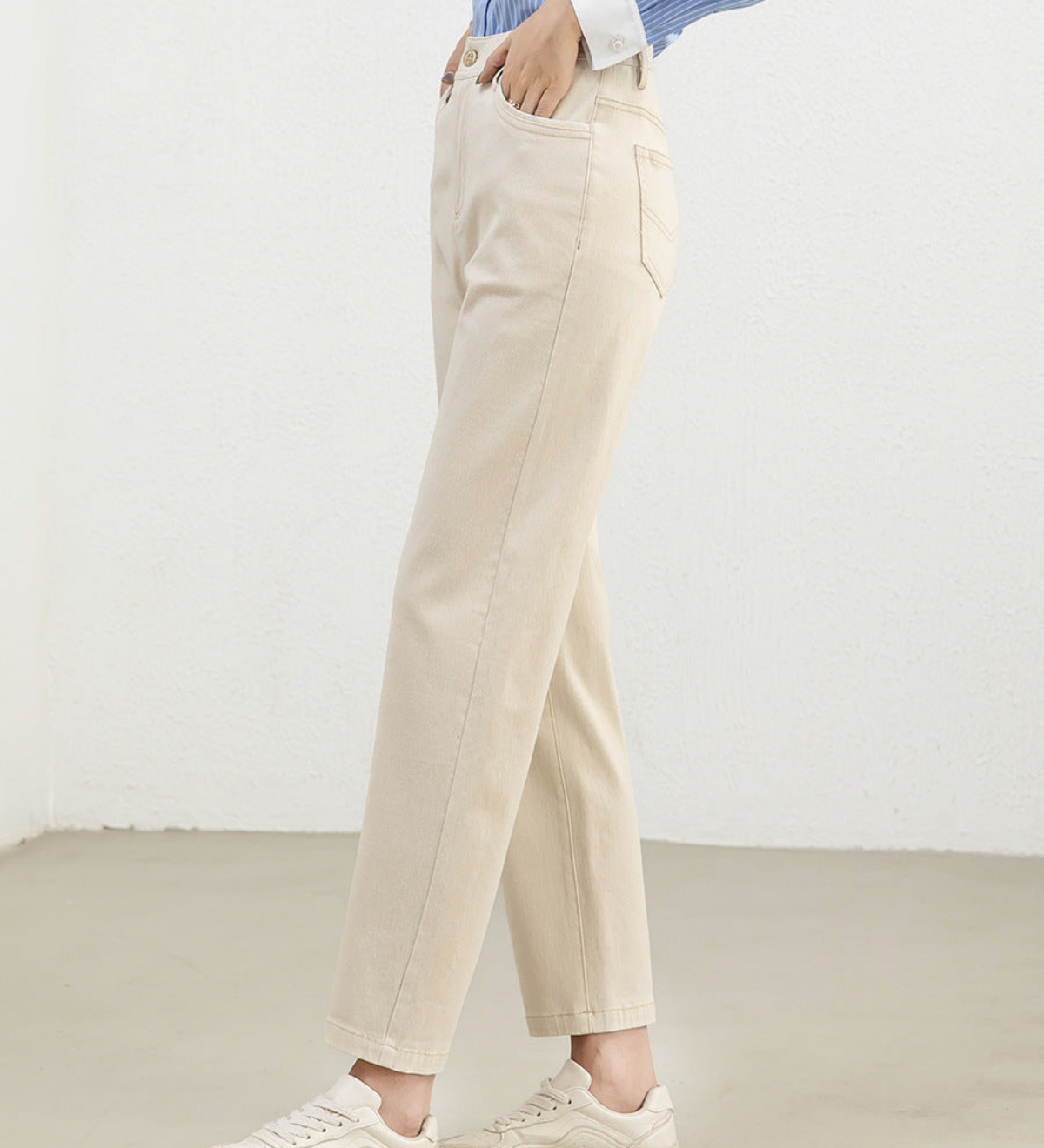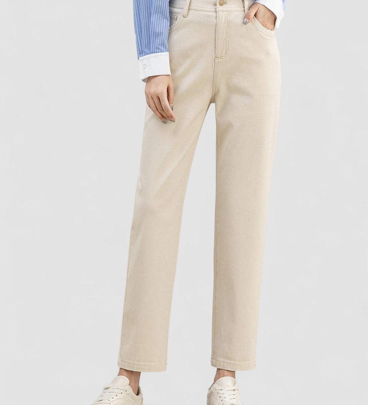 Caitlin | Pantaloni cu Butoni și Dungi Eleganți