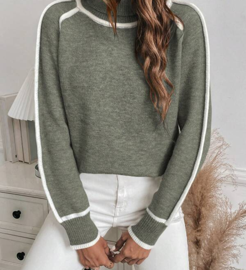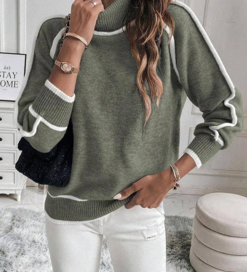 Lucía | Pulover cu guler înalt și dungi contrastante