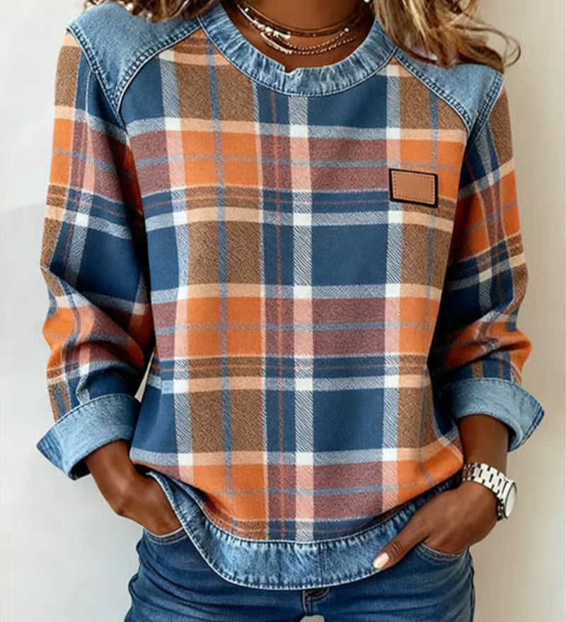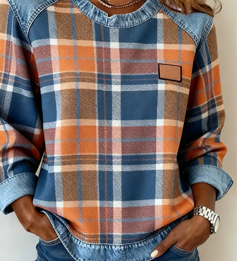 Erica – Hanorac din flanel pentru femei cu detalii din denim