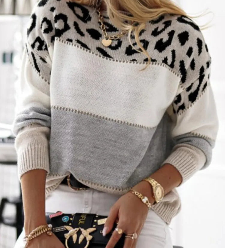 Theresa - Pulover leopard chic pentru femei, pentru iarnă