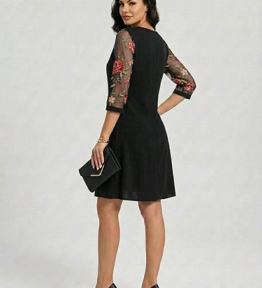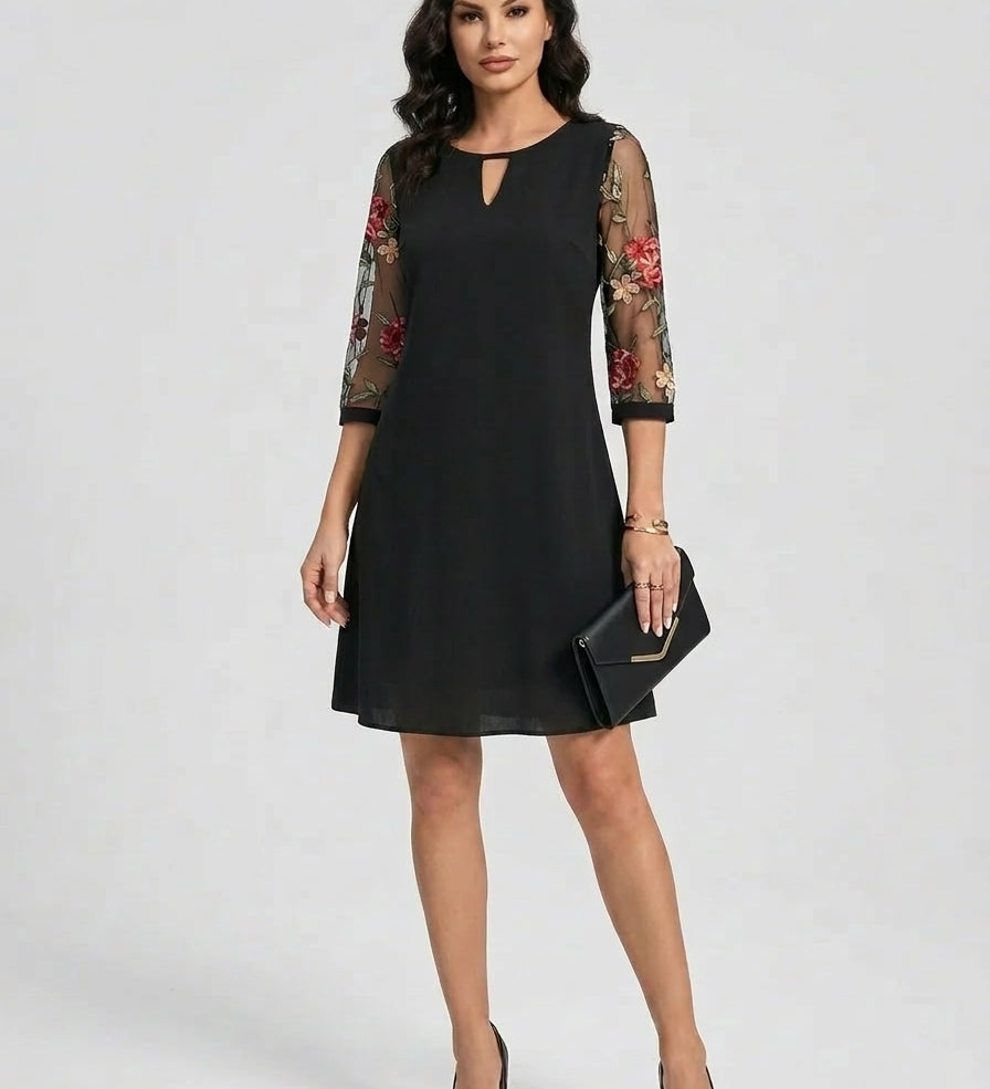 Rodica™ – Rochie Elegantă cu Mâneci din Tul Brodat