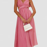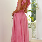 Rochia Ava Midi cu mâneci puff roz este o alegere elegantă și versatilă pentru orice garderobă. Confecționată dintr-un material ușor și respirabil, această rochie oferă confort pe parcursul întregii zile. Designul încrucișat din partea superioară, mânecile puff delicate și fusta fluidă creează un look romantic și sofisticat care se potrivește perfect pentru evenimente de zi sau seară.