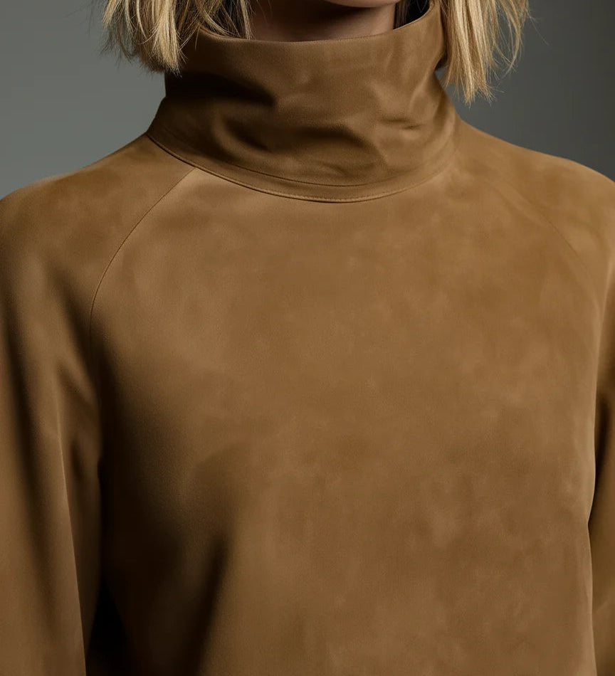 Sara | Rochie mini lejeră din suede cu guler înalt