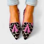 Adaugă un accent jucăuș ținutei tale cu loafers quantum ! Aceste loafere remarcabile se evidențiază printr-un motiv expresiv, animalic, cu ciucuri veseli și contrastanți. Forma pantofului adaugă eleganță, în timp ce materialul moale și designul adânc le face confortabil și respirabile.